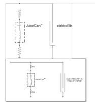 Inny sposób podniesienia skuteczności odpylaczy elektrostatycznych wybrali konstruktorzy z amerykańskiej firmy BHA Group Inc. Wynalazek wykorzystuje ukryte rezerwy istniejące w obecnie stosowanym sposobie zasilania elektrycznego układów elektrod. Jak wiadomo między elektrody ulotowe a uziemione elektrody zbiorcze podawane jest wysokie napięcie wyprostowane przez układy tyrystorowe, które tworzą wraz z transformatorami podwyższającymi tzw. zespoły zasilające. Jednak kształt tego napięcia wyraźnie odbiega od idealnego przebiegu stałego: poziom napięcia wykazuje nieustanne oscylacje między dolną i górną wartością, które mogą różnić się od wartości średniej nawet o 40%. Tymczasem maksymalną skuteczność odpylania uzyskuje się przy możliwie wysokiej wartości napięcia ulotu, której osiągnięcie ogranicza wytrzymałość przestrzeni międzyelektrodowej. W rezultacie ciągłe podnoszenie tego napięcia przez regulator parametrów zasilania komory jest przerywane powtarzającymi się przeskokami, po których następuje stopniowe odbudowywanie napięcia ulotu. Autorzy wynalazku przypomnieli znany fakt, że wyrównanie przebiegu napięcia ulotu (tzn. zrównanie wartości szczytowej i minimalnej z wartością średnią) pozwoliłoby wydatnie podnieść skuteczność odpylania obniżając częstość przeskoków. Ideę tę urzeczywistnili za pomocą opracowanego urządzenia o dźwięcznej nazwie JuiceCan (puszka soku). Zainstalowany między zespołem zasilającym i elektrofiltrem (patrz rysunek) JuiceCan jest bardzo szczególnym rodzajem kondensatora, gdyż zawiera spiralny element o znacznej indukcyjności. Stanowi zatem szeregowy obwód złożony z elementu pojemnościowego i indukcyjnego. Każdy z nich ma przypisaną inną rolę do spełnienia. Podczas gdy kondensator zwiększa średnią wartość napięcia podawanego na elektrodę ulotową, cewka ogranicza prądy ulotowe o wysokiej częstotliwości obniżając intensywność przeskoków.