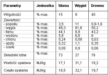Produkcja słomy w kraju wynosi 25 mln ton/rok. Jej wartość opałowa odpowiada 13 mln ton/rok węgla, a jej własności fizykochemiczne - w porównaniu z innymi nośnikami - energii ujęto tabelą 2.