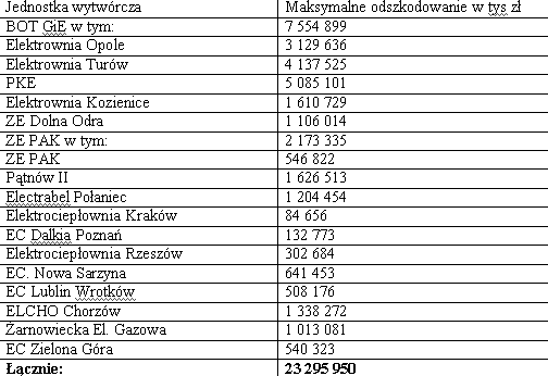 W 2004 roku poszczególne elektrownie systemowe dostarczały do PSE energię elektryczną w następujących cenach.
